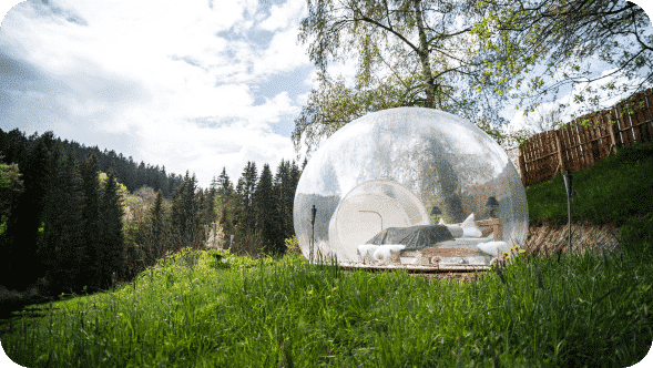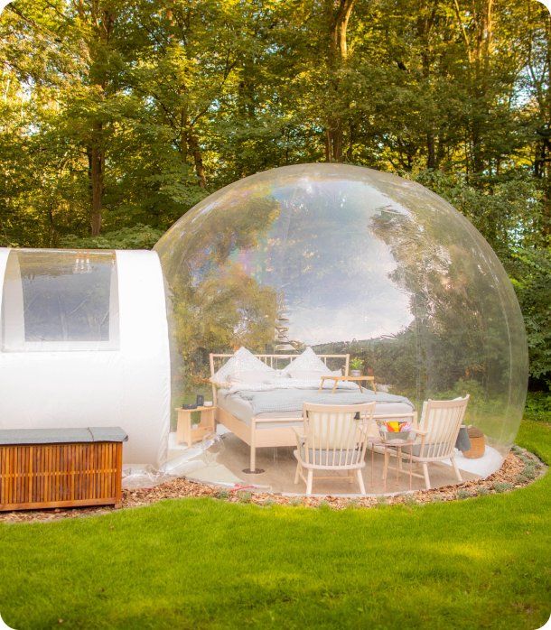 Sie sehnen sich nach Freiheit, Ruhe und Natur und suchen nach einem originellen Abenteuer in Ihrer Nähe? Schon gefunden! Book a Bubble ist das Online-Buchungsportal von Bubble Tent Germany. Mit nur wenigen Klicks können Sie Ihre Abenteuerübernachtung buchen! Keine Spur von Massentourismus – ein Urlaub in einem Bubble Tent ist außergewöhnlich und unvergesslich. Hier finden Sie bestimmt Ihr Lieblings-Bubble!