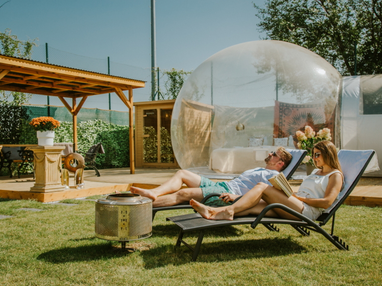 Verabschieden Sie sich von Schlafsäcken und Fußmatten und begrüßen Sie Boxspringbetten und Hotelkomfort. Mit unseren Kuppelzelten erleben Sie eine Nacht “im Freien”, direkt unter dem Sternenhimmel, während Sie Luxus und Entspannung genießen.