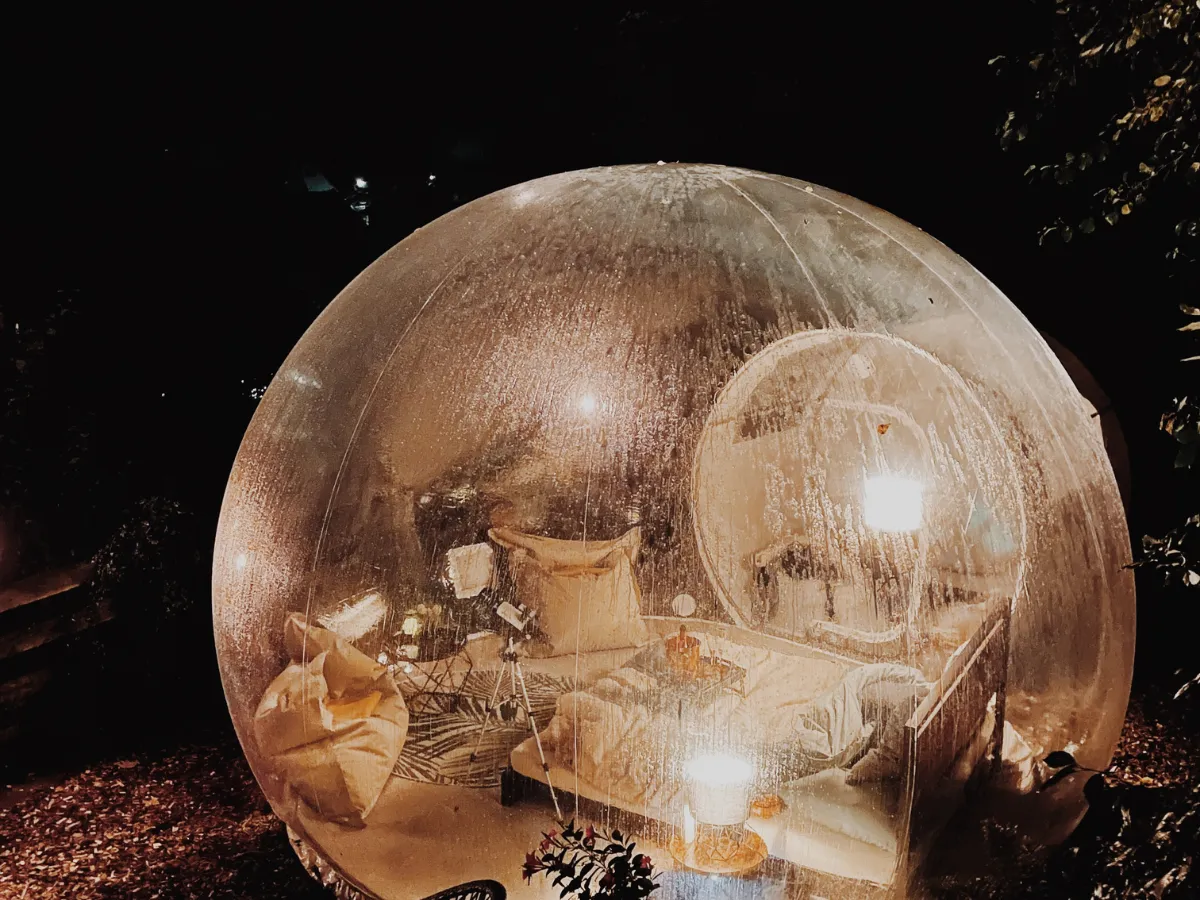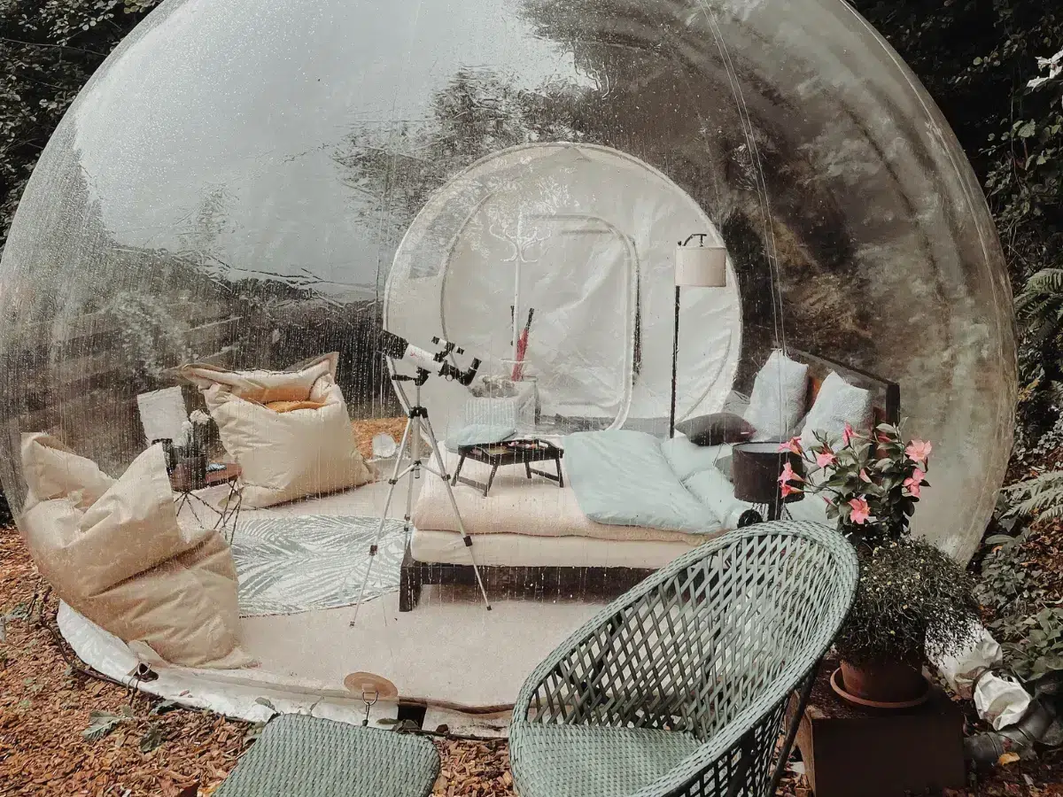 Das Bubble Tent bietet Platz für zwei Erwachsene und ein Kind, das im Bett der Eltern schlafen kann.