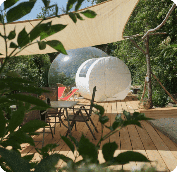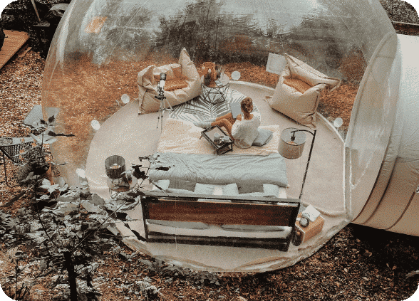 Unsere Bubble Tents sind mit einem hervorragenden Luftzirkulationssystem ausgestattet. Ein leistungsstarker Lüfter tauscht die gesamte Luft im Zelt ca. alle 5 Minuten komplett aus. So könnt ihr in eurer Bubble immer gut durchatmen. Und zwar ohne Pollen oder Stechmücken – denn der Lüfter ist zusätzlich mit einem feinmaschigen Filter ausgestattet, der alles aufhält, was im Zelt nichts zu suchen hat.