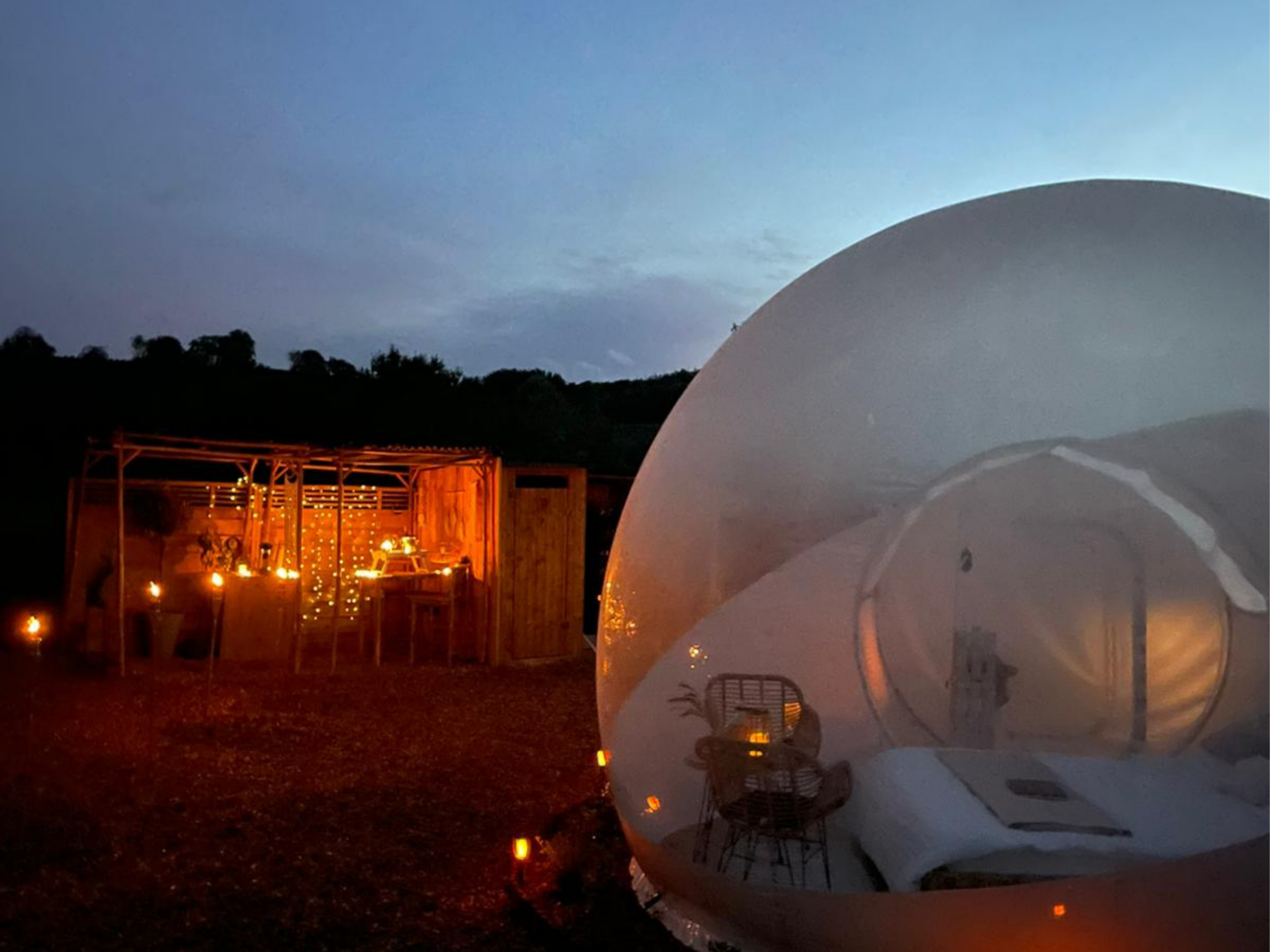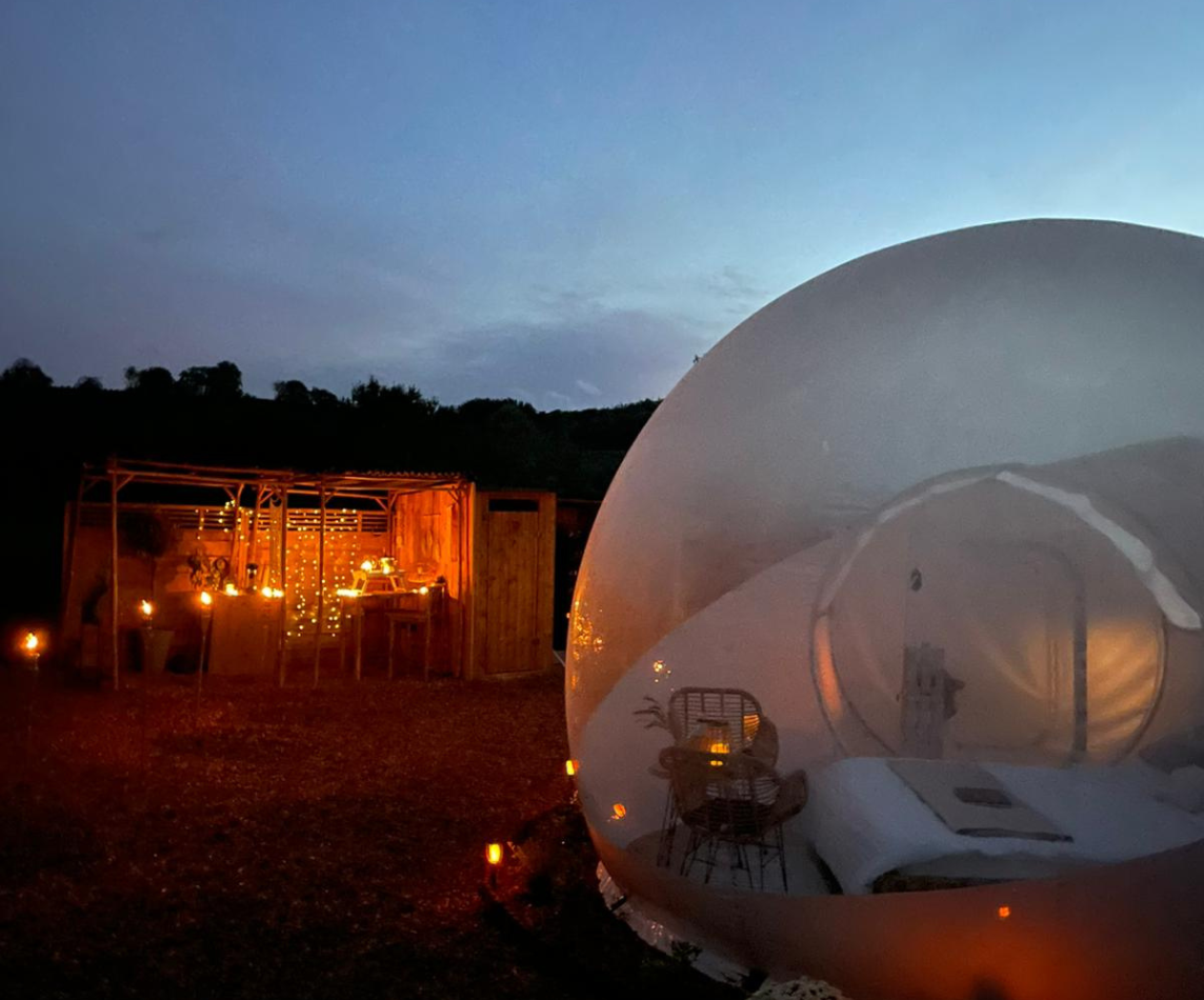 Das Bubble Tent ermöglicht einen freien Blick nach draußen und schafft eine Verbindung zur Umgebung, während du gleichzeitig geschützt und komfortabel übernachtest. Die Kombination aus Offenheit und Rückzug macht den Aufenthalt besonders angenehm – sowohl tagsüber als auch in der Nacht.