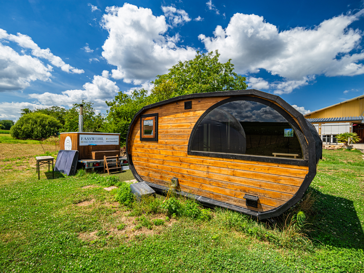 Der Außenbereich des Bubble Hotels Pfalz – Alpaka Al Capone ist perfekt für entspannte Momente in der Natur. Wer sich besonders entspannen möchte, kann gegen einen Aufpreis die geteilte Fasssauna oder den Hot Tub nutzen, um nach einem aufregenden Tag in der Natur vollkommen zu entspannen. Der Grill und die Feuerstelle sorgen für gemütliche Abende im Freien, an denen ihr den Sternenhimmel bewundern und den Tag ausklingen lassen könnt.