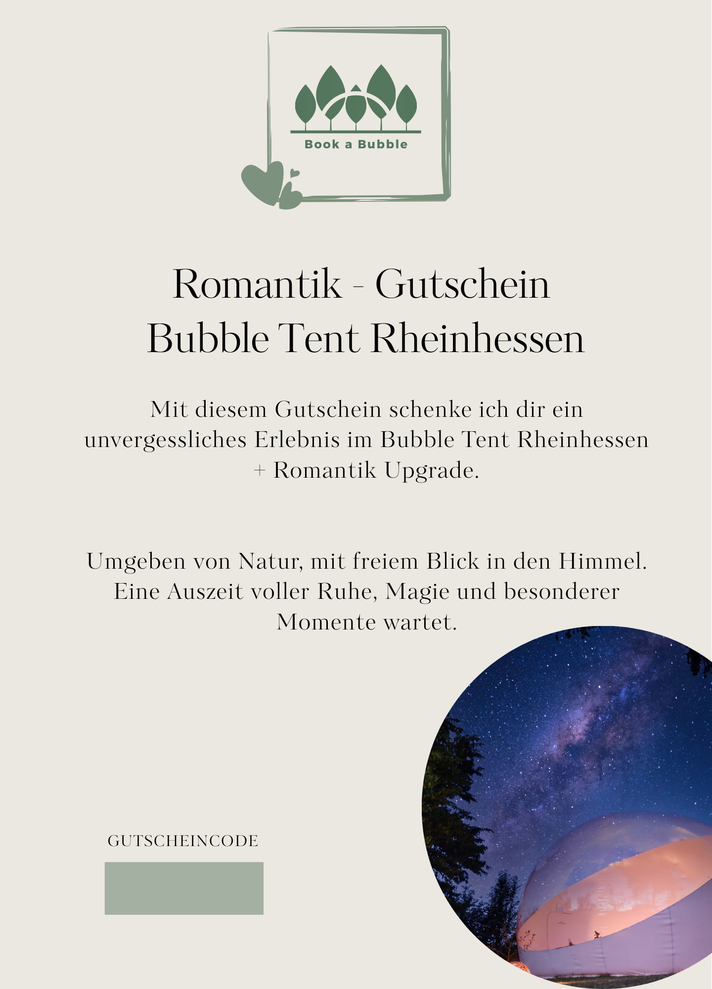 Bubble Tent Rheinhessen | Standard Gutschein